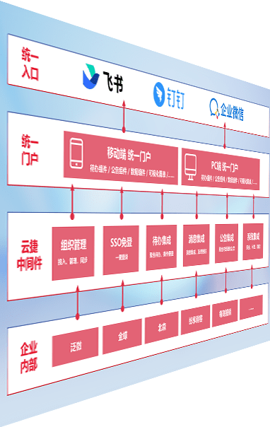 对协作平台提供支持服务,,支持企业应用与协作平台对接,,,,包含组织同步、、、、消息集成、、、待办集成等。。支持目前主流的协作平台:钉钉、、、企微和飞书。。。